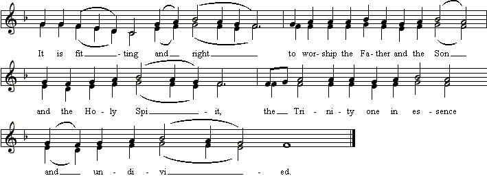 From the Latin, Byzantine, and linguistic evidence, we can now draw up a root definition for the term antiphon. An antiphon is a liturgical element consisting of a strophically divided psalm or scriptural canticle and a refrain that is sung as a response, ideally by the congregation, between the strophes of the psalm or canticle; moreover, the psalm or canticle is sung in alternation, right to left, by two choirs or cantors culminating in the Trinitarian doxology27 and a final singing of the refrain. The refrain can be from either a scriptural or an ecclesiastical source and serves to focus the meaning and Christian understanding of the psalm or canticle in the present liturgical celebration.
