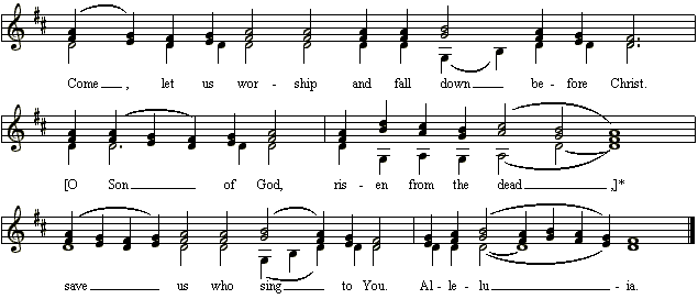 24 "have mercy on us," "have put on Christ," or "And Your Holy resurrection we glorify" depending on whether the trisagion hymn or one its replacements is sung (As many as have been baptized or Before your Cross).