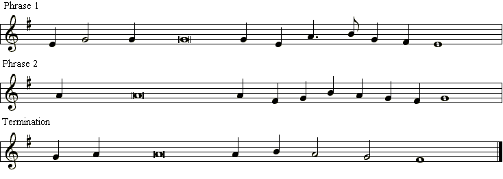 The difficulty in this piece appears at the end of each repetition of phrase one.