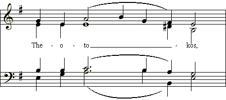 During the last few months we have been using a hymn to Theotokos based on a melody called Joy of the Heavenly Hosts.. It is a special melody used for festal stikhera in tone one. It consists of two repeating phrases and a special termination. In its most basic form it looks like this: